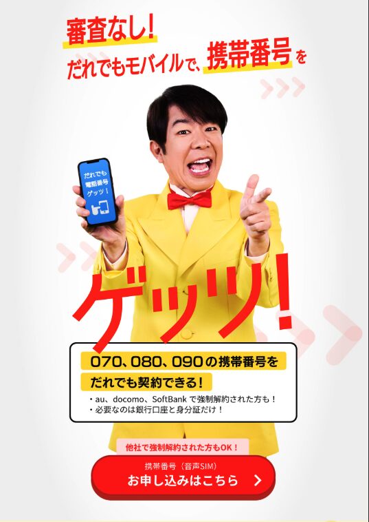 | 商品名 | だれでもモバイル(審査不要SIM) |