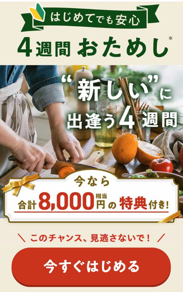 今すぐお得に申し込む|特典付きではじめての食材宅配