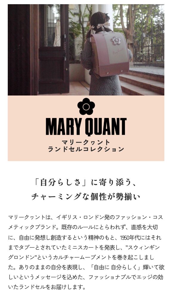 人気ブランドMARY QUANTの世界観をそのままランドセルに。