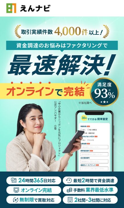 売掛金を最短1日で現金化できるから、急な支払いにも即対応。