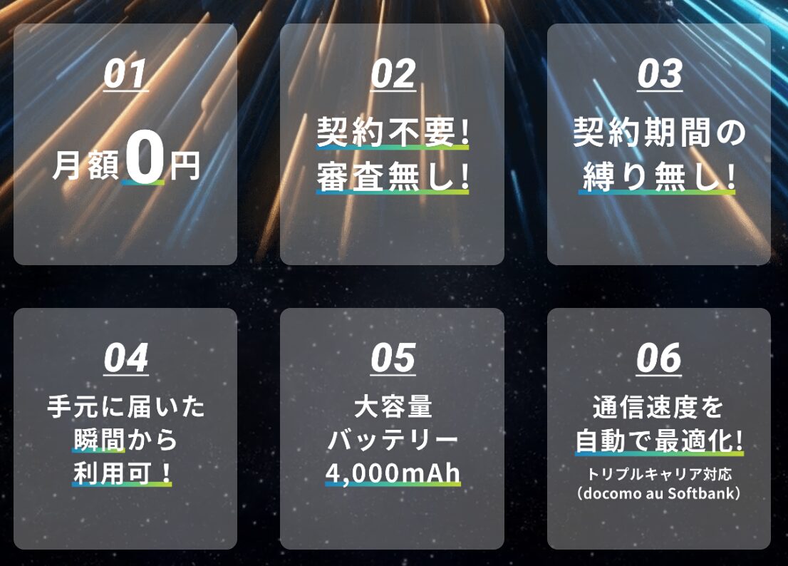 今ならキャンペーン実施中|在庫があるうちにお申し込みください 公式サイトはこちら NeoCharge WiFiが選ばれる理由 面倒な工事・立ち会い不要で、届いたその日からすぐに使えるポケット型WiFi。 月額料金もシンプルでわかりやすく、外出先でも自宅でも安定したインターネット環境を実現します。 【特徴】 ・工事不要、最短即日発送ですぐ使える ・大容量通信で動画やテレワークも快適 ・契約もオンライン完結でかんたん ・持ち運び可能で外出先でも利用OK ・面倒な設定不要、初心者でも安心 「ネットが遅い」「開通まで時間がかかる」といったストレスから解放され、好きな場所で快適にインターネットを楽しめます。 今ならキャンペーン実施中|在庫があるうちにお申し込みください 商品名 NeoCharge WiFi カテゴリ 今だけお得