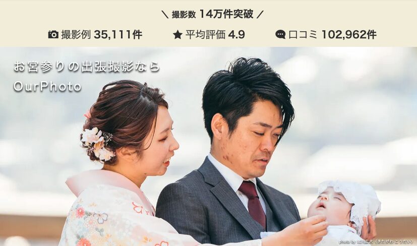 24時間予約OK|まずは希望日をチェック 今すぐ撮影プランを探す 思い出を“作品”として残す出張撮影サービス 自宅や公園、神社など好きな場所でプロカメラマンが出張撮影。 自然な笑顔や大切な瞬間を、データでたっぷり納品。 スタジオに行かなくても、リラックスした雰囲気で家族の思い出を形にできます。 ・全国のプロカメラマンから選べる ・七五三・お宮参り・誕生日・家族写真に対応 ・撮影データをまとめて納品 ・事前にカメラマンとメッセージ相談可能 ・料金が明確で安心 一瞬の笑顔を、一生の宝物に。 24時間予約OK|まずは希望日をチェック 商品名 OurPhoto(アワーフォト) カテゴリ 今だけお得