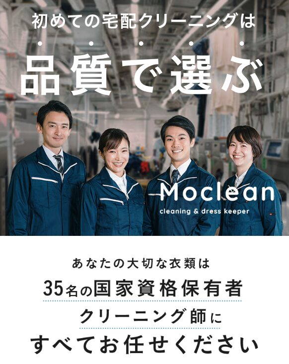 最短自宅集荷OK|まずは無料でサービス詳細を確認 今すぐ自宅からクリーニングを依頼する 追加料金なしでワンランク上の仕上がりへ ・”おもてなしクリーニング”がコンセプト ・通常オプションの染み抜きも無料対応 ・国家資格「クリーニング師」35名在籍 ・品質と顧客対応に徹底的にこだわり 重たい衣類を持ち運ぶ必要なし。 自宅にいながらプロ品質の仕上がりを体感できます。 追加料金の心配がないから安心して任せられ、大切な衣類を長く美しく保てます。 最短自宅集荷OK|まずは無料でサービス詳細を確認 商品名 モクリン カテゴリ 今だけお得