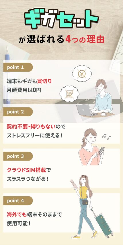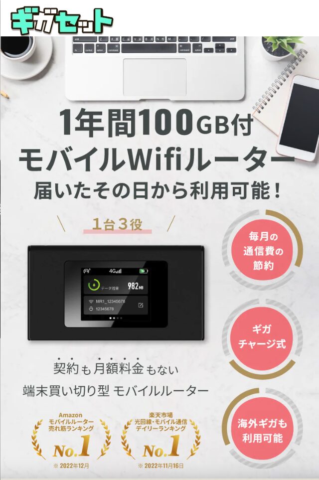 契約手続き不要|今すぐ使える即戦力WiFi 今すぐギガ不足を解消する 月末の通信制限にさよなら ・月額0円(端末もギガも買い切り) ・契約不要・縛りなし ・使いたい分だけギガをチャージ可能 ・画面付き端末で残容量が一目で分かる ・国内キャリア対応クラウドSIM ・海外利用も可能(別途プラン) ・24時間365日チャージOK 月末の速度制限に悩まない新しいWiFiのカタチ。 必要な時だけチャージするからムダな固定費なし。 テレワーク・外出先・入院中・お子様用など、あらゆるシーンで即戦力。 電源を入れるだけですぐ使える手軽さも魅力です。 契約手続き不要|今すぐ使える即戦力WiFi 商品名 ギガセットWiFi カテゴリ 今だけお得